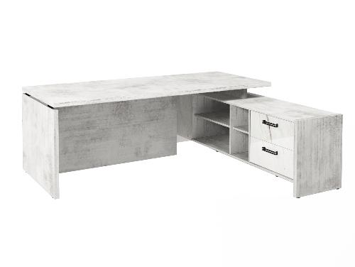 Столешница, бок стола и бок тумбы выполнены из ЛДСП толщиной 38 мм. Цвет - "Хромикс белый". Кромка 2 мм.
